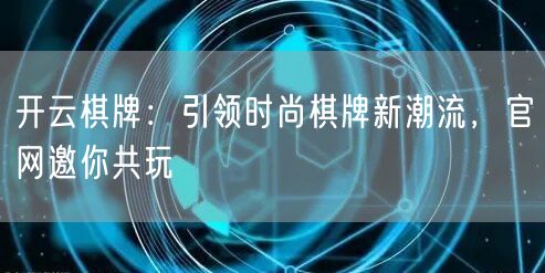随着互联网的快速发展,人们的娱乐方式也在不断地更新迭代。作为一种经典的智力竞技运动,棋牌类游戏一直深受人们的喜爱。而如今,开云棋牌以其独特的魅力和创新的游戏玩法,引领着时尚棋牌新潮流,成为众多棋牌爱好者的首选。